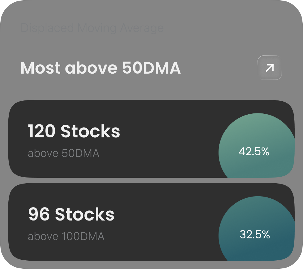 See how many holdings are above 50DMA and 100DMA to assess momentum strength within your portfolio.